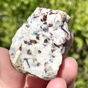 The white feldspar matrix creates a striking contrast, highlighting the natural mineral blend. It is a unique and well-balanced piece showcasing a harmonious mix of color and texture.